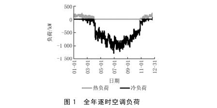 空调负荷计算采用DeST模拟运算软件,对建筑进行空调全年逐时动态负荷模拟计算结 果分析。计算设计负荷见表2,全年逐时空调负荷见图1。