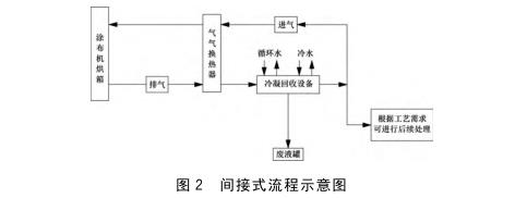 深冷技术是对NMP的废气进行冷却,将其冷凝为液体。主要包括2种方式:间接式技术和直接式技术。间接式技术采用气 气换热器与冷凝回收装置结合的降温方式,将大部分NMP降温成液态;直接式技术采用气气换热器与冷却塔喷淋结合的降温方式,冷却塔的冷媒为高纯度NMP,将废气中NMP混合、冷凝,达到一定量后排出。上述2种工艺分别如图2、 3所示。