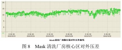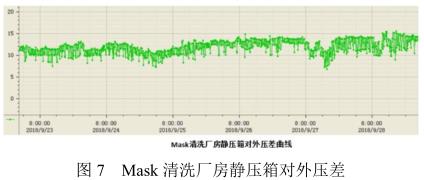 Mask 清洗厂房截取一周的静压箱、核心区对外压差曲线如图7、图8所示。