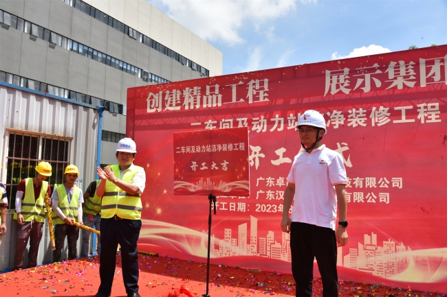 上午11点,艳阳高照,广东汉鼎建设集团在项目现场迎来了广东卓高新材料科技有限公司2车间及仓库洁净装修工程开工仪式。